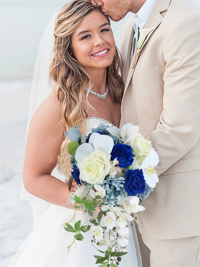 Leave behind the stress of fading flowers. Our signature cascading bouquet stays flawless from your first look to your final dance.